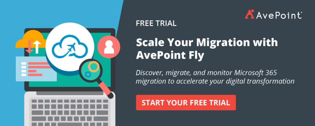 MSPs have a tremendous opportunity to help the growing number of businesses at the beginning of their cloud journey by designing a migration strategy that minimizes downtime and ensures a smooth transition. Cloud migration services and tools, such as AvePoint Fly, can assist with a simplified transition from on-premises or cloud-hosted mail, content, and collaboration to Microsoft 365.